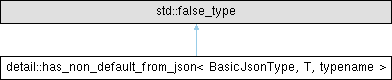 Inheritance diagram for detail::has_non_default_from_json< BasicJsonType, T, typename >: