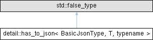 Inheritance diagram for detail::has_to_json< BasicJsonType, T, typename >: