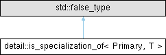 Inheritance diagram for detail::is_specialization_of< Primary, T >: